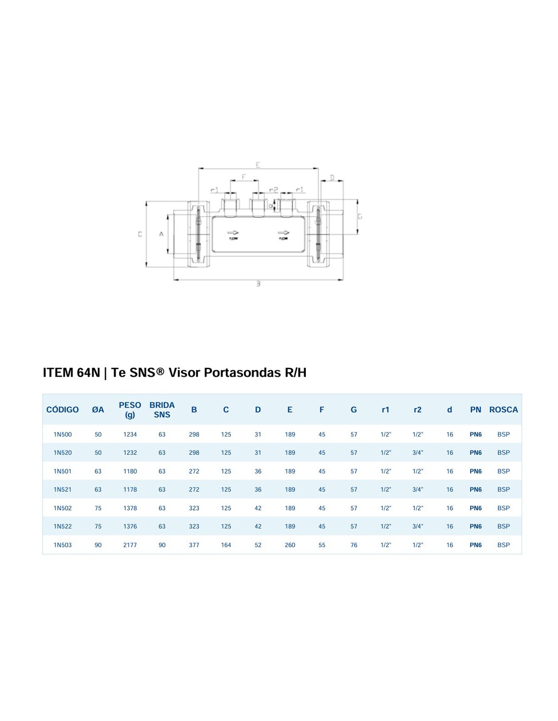 Portaelectrodos visor PVC-U HIDROTEN 50mm PN6 3x½"-¾" 101N520 (presion)