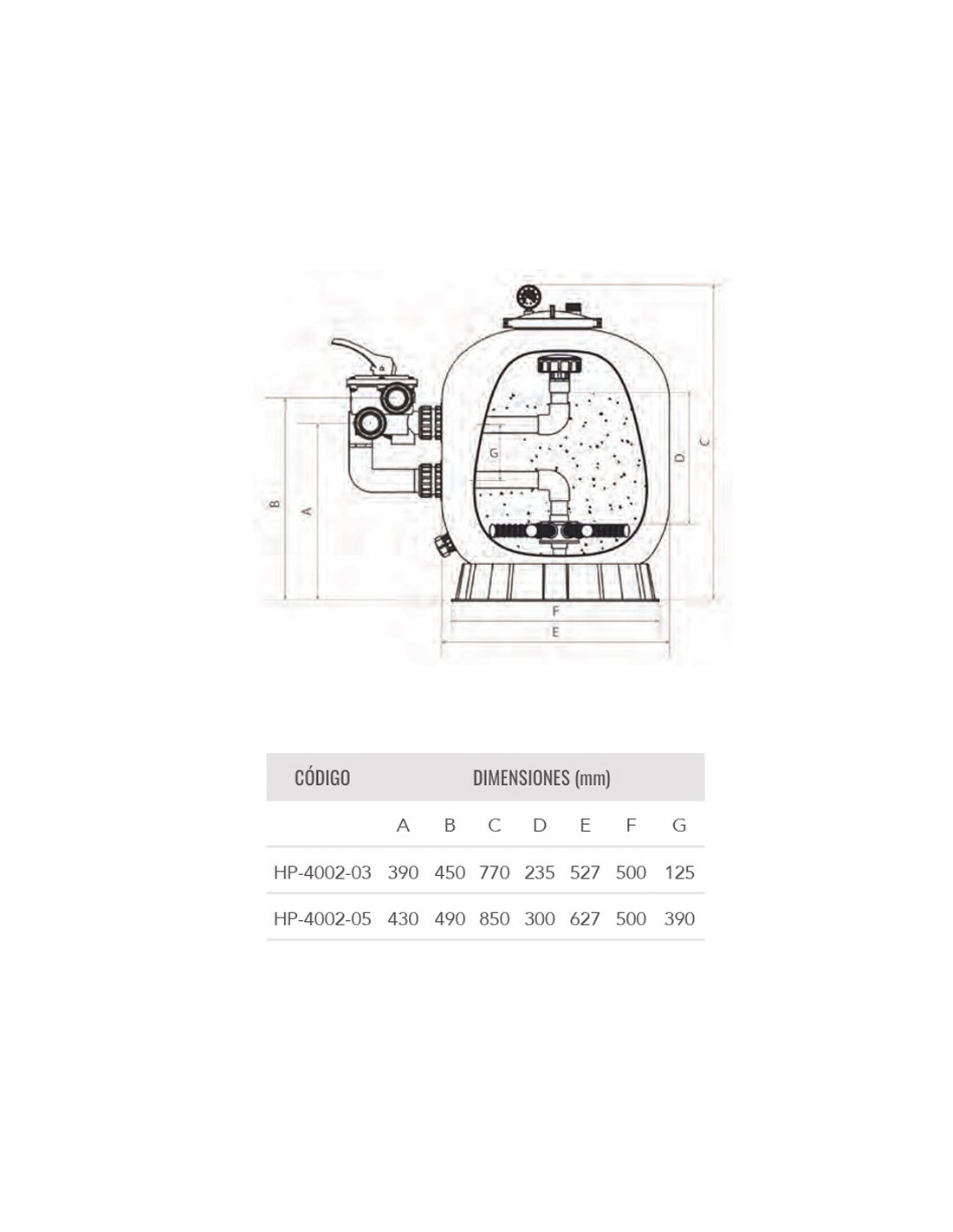 Filtro piscina HW Veleta 500mm 10m3/h c/valvula lateral HP-4002-03