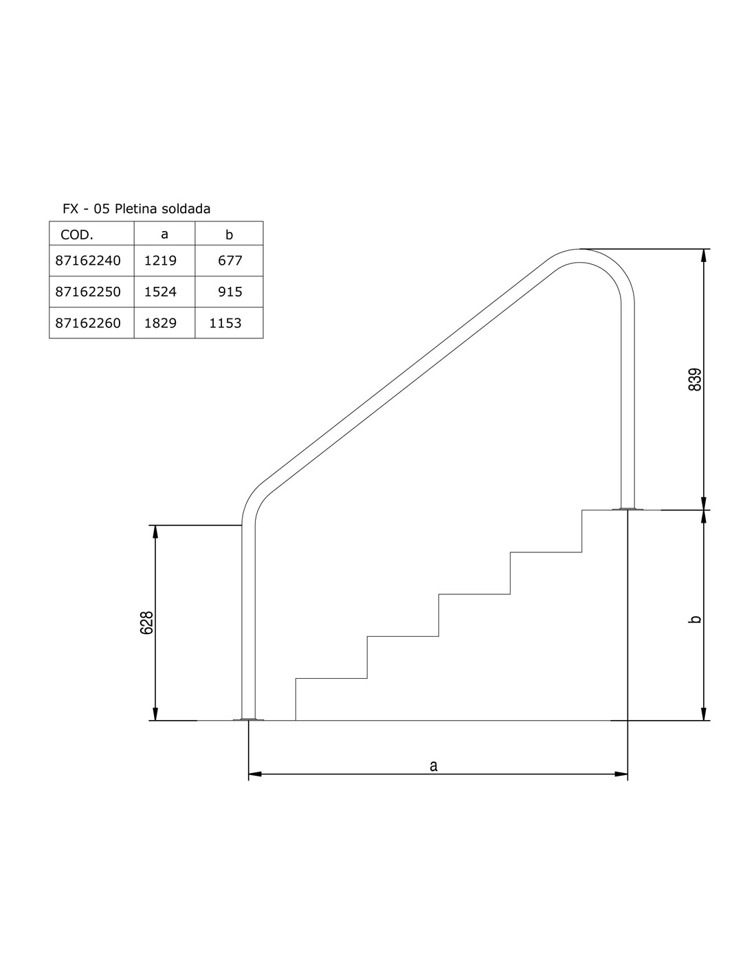 Barandilla piscina FLEXINOX mod. FX-05 2 curvas 1829mm pletina AISI316L 87162260
