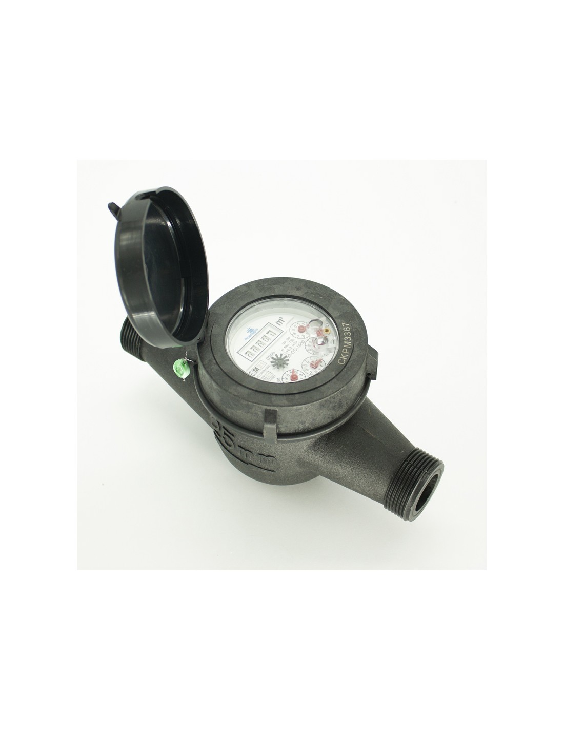 Contador de agua fria chorro multiple, fabricado con cuerpo en polimero, para uso en riego.