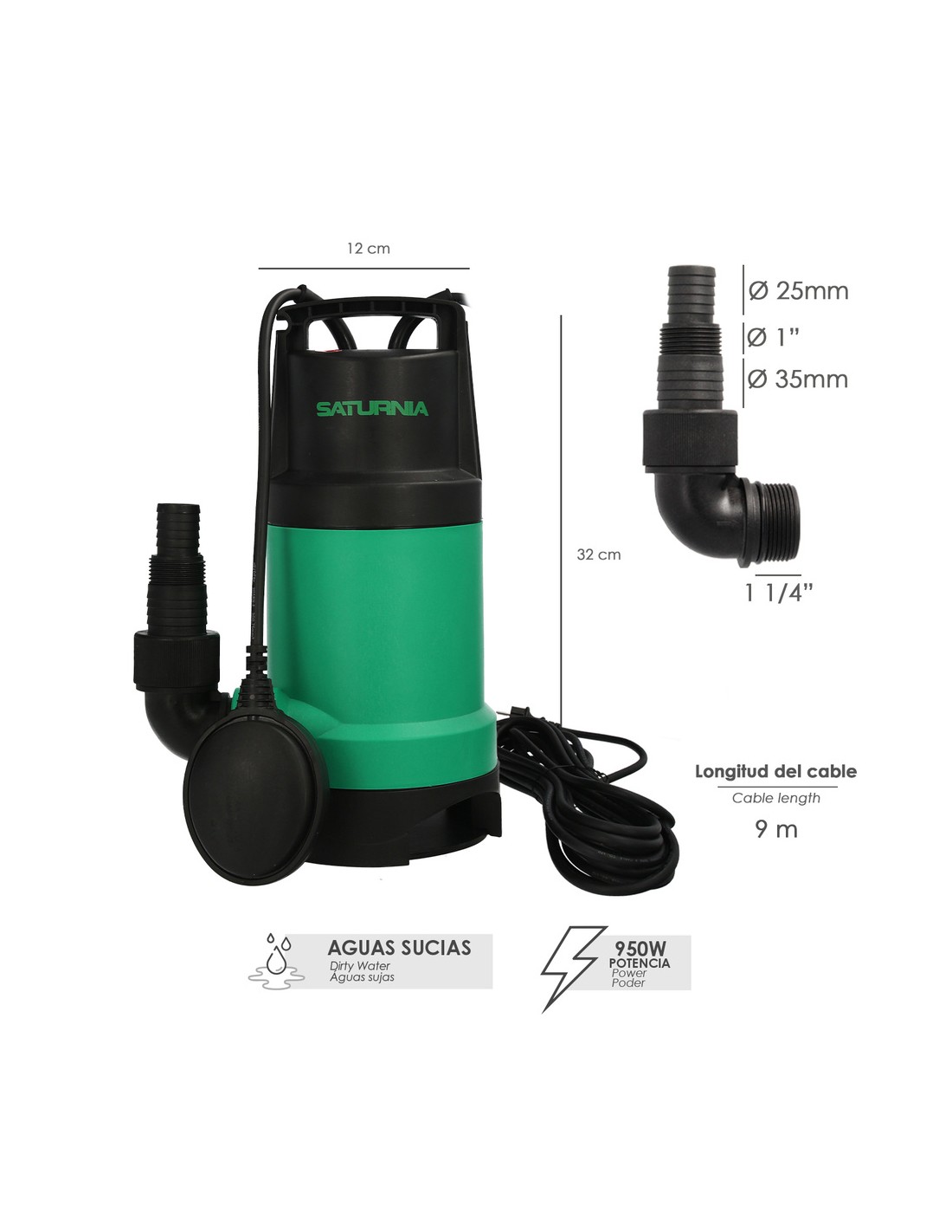 Bomba achique SATURNIA 950w 14000lt/h aguas sucias 08064025