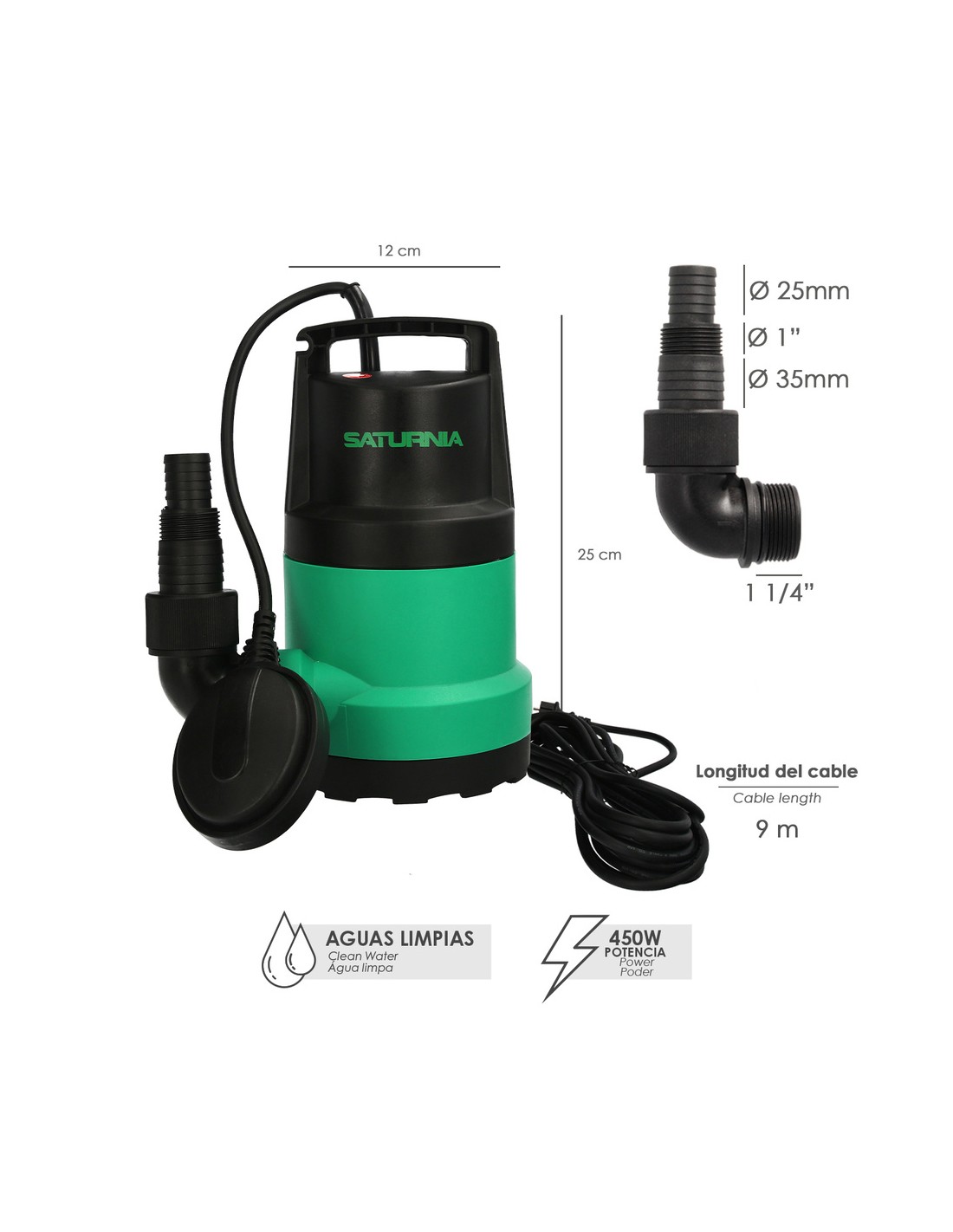 Bomba achique SATURNIA 450w 8000lt/h aguas limpias 08064005
