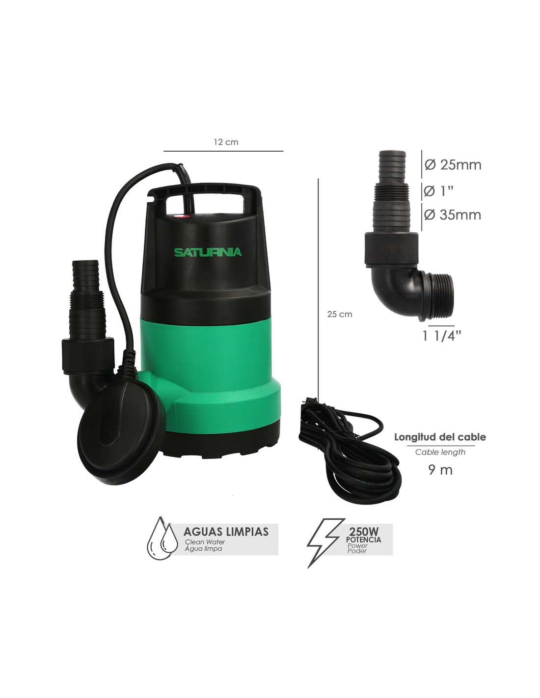 Bomba achique SATURNIA 250w 5500lt/h aguas limpias 08064000
