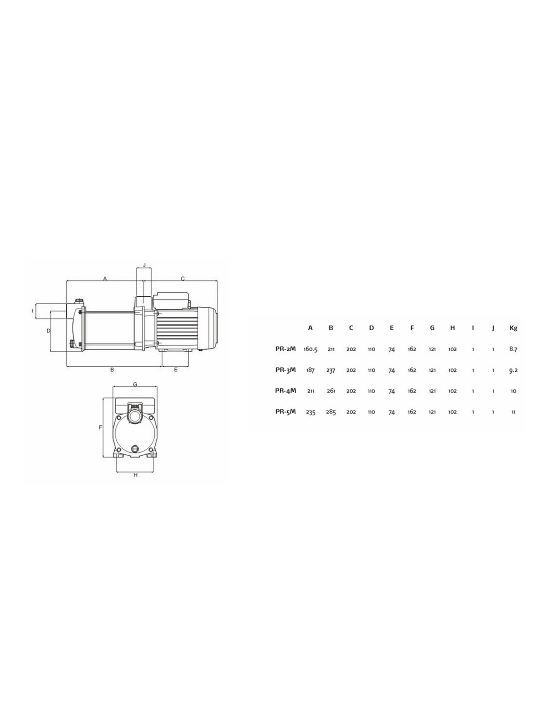 Bomba centrífuga multicelular PR-2M para instalaciones con aguas limpias en aplicaciones domesticas, riegos,...