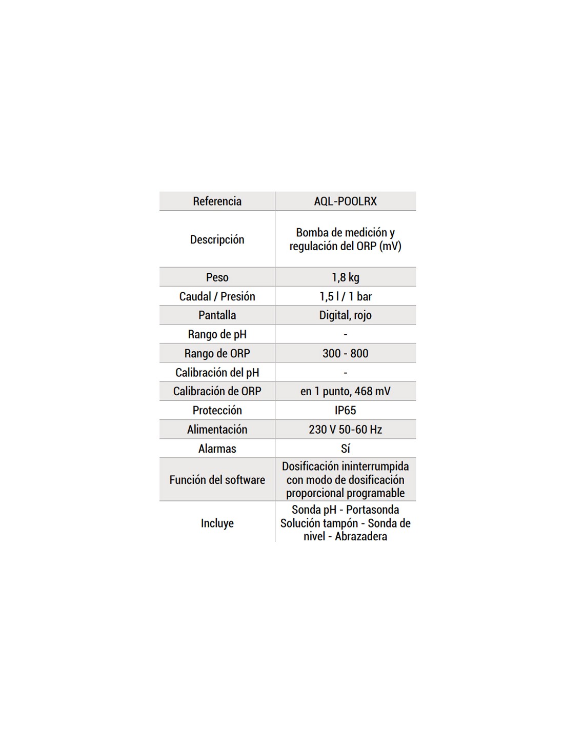 Bomba dosificadora Pool RX para la medicion y regulacion del cloro, especial para piscinas y spas. Dosificacion ininterrumpida con modo de dosificacion proporcional programable.