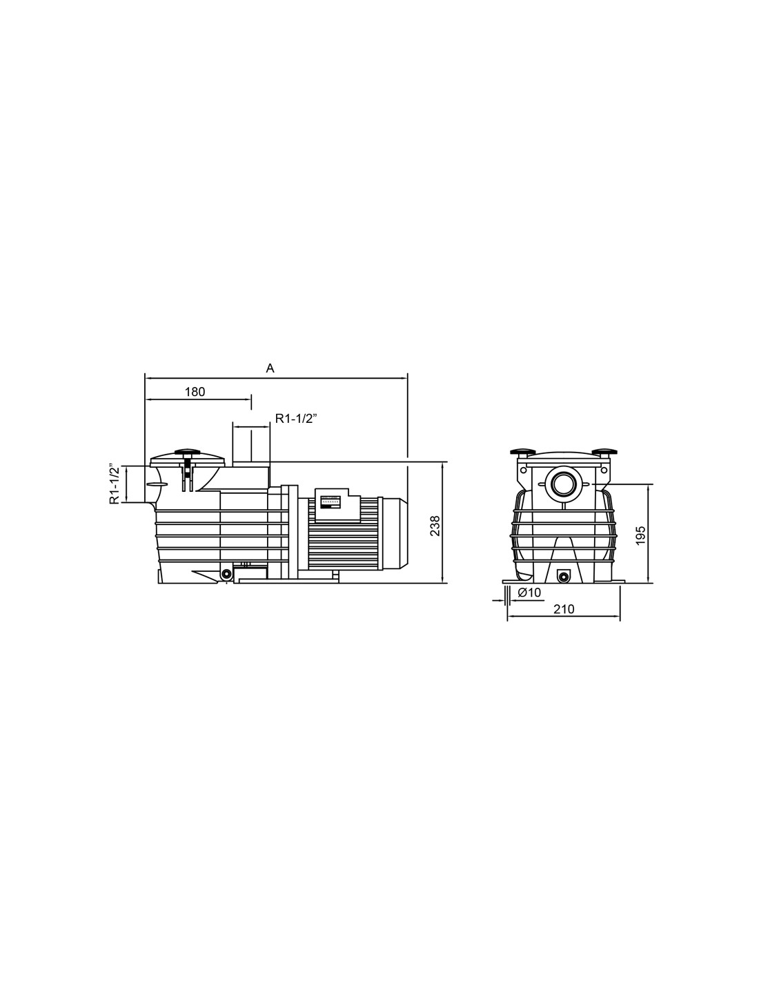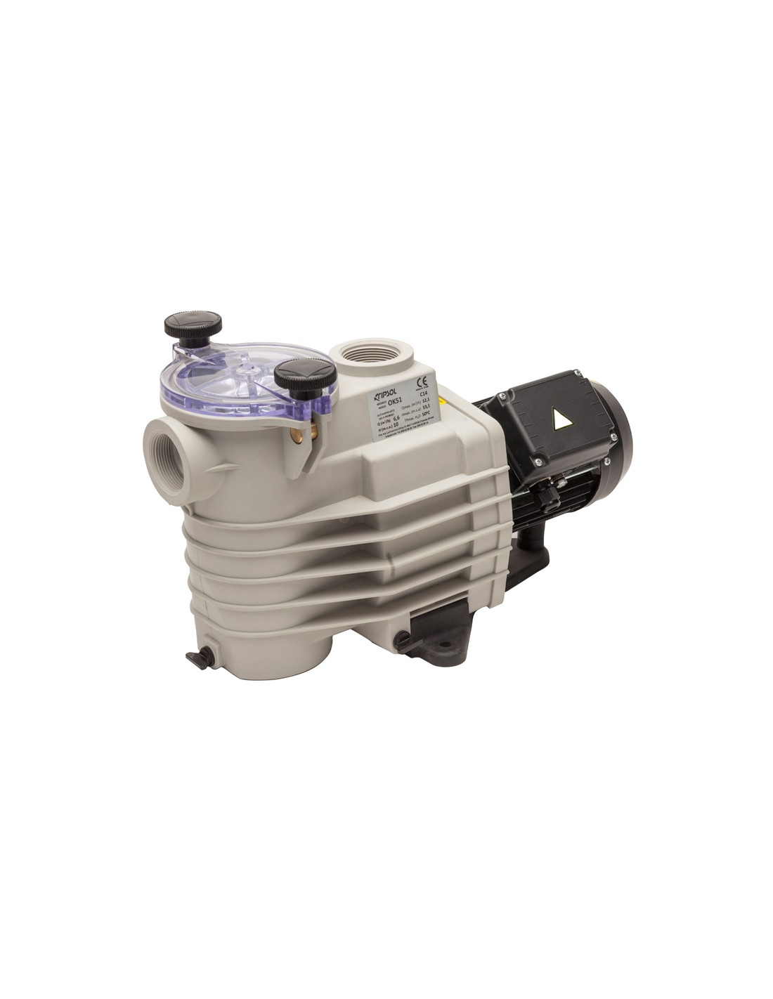 Bomba piscina Ondina 1cv, compacta y silenciosa, adaptable a locales tecnicos reducidos y casetas. Fabricada con cuerpo en termoplastico inyectado, turbina en noryl con F.V. y con inserto en AISI303, cestillo en material plastico inyectado color blanco y tapa de cuerpo en policarbonato transparente.