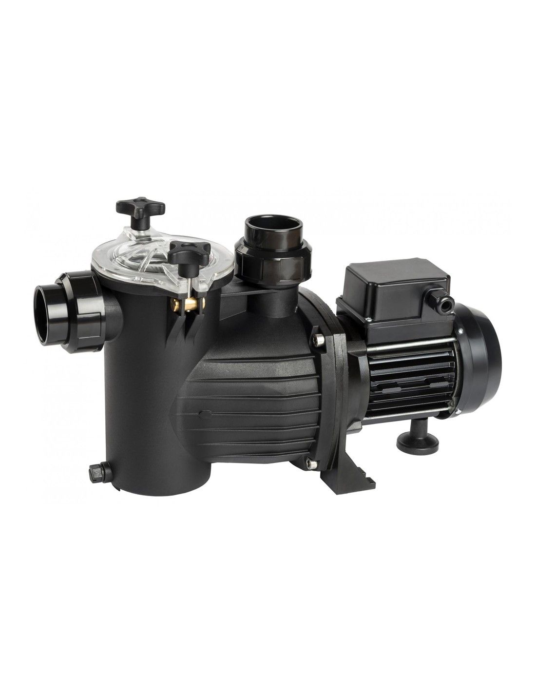 Bomba autoaspirante para piscinas y spas, fabricada con tapa transparente para ver el cestillo, y sello mecanico en AISI-31, puede ser utilizada en piscinas de cloracion salina.
