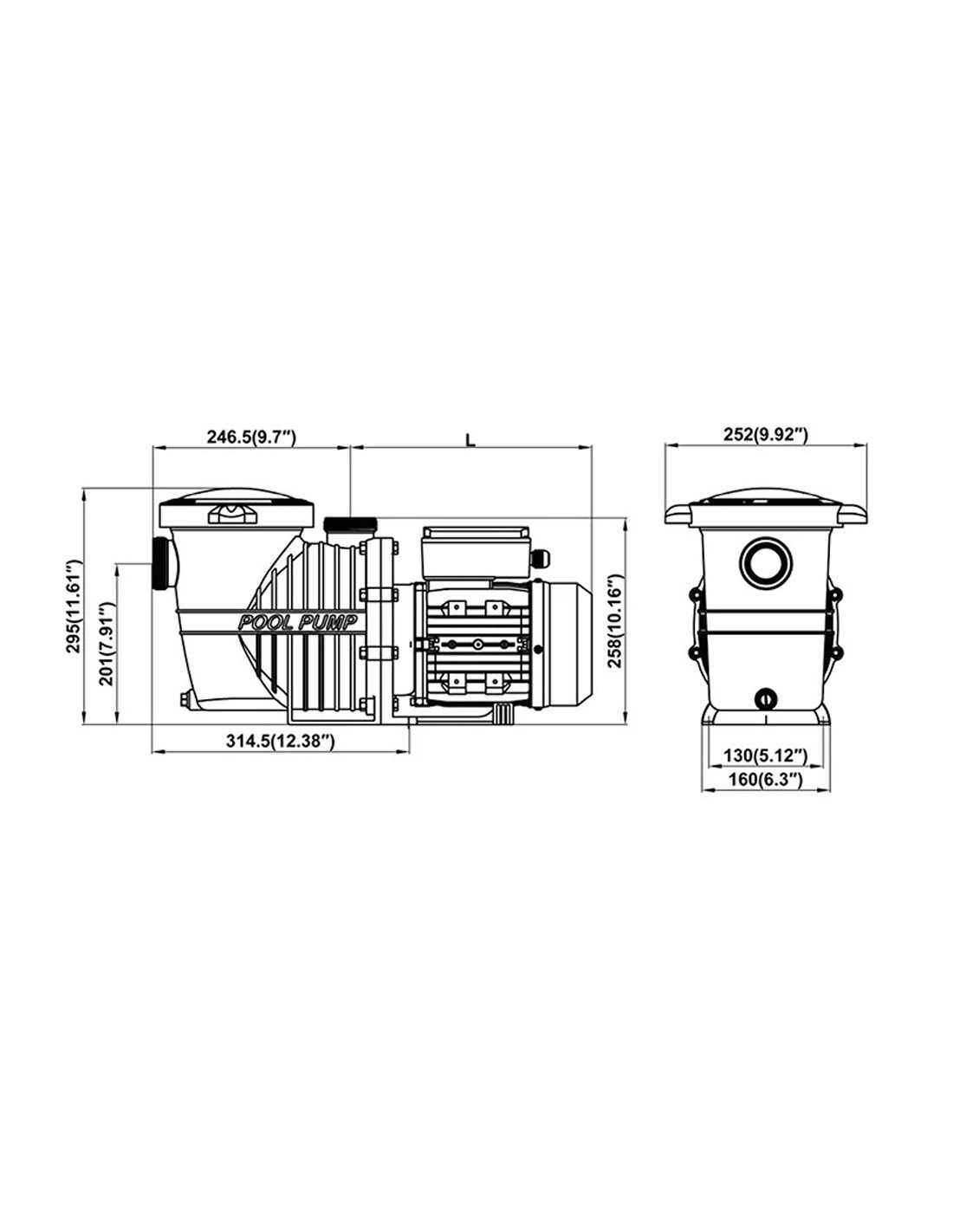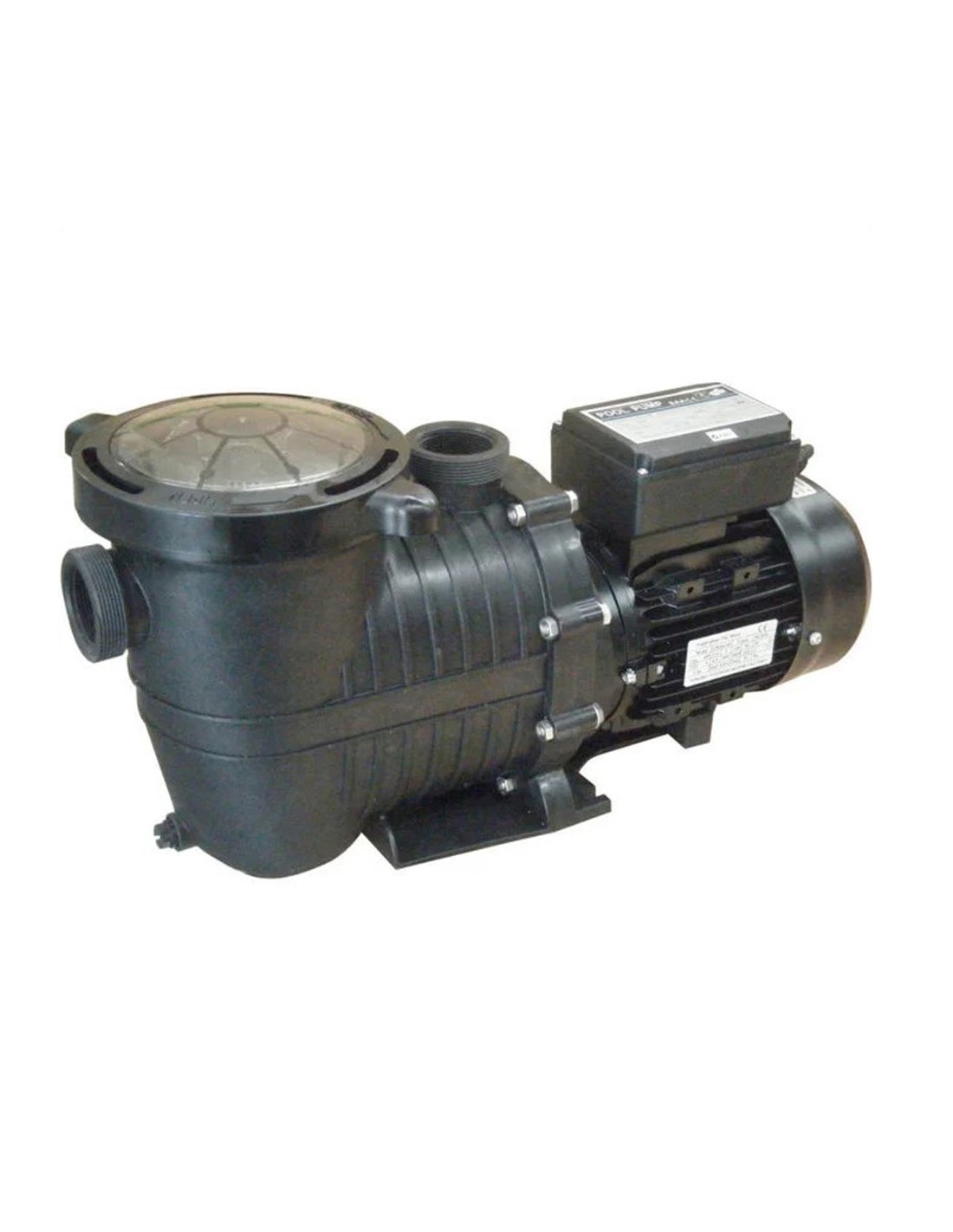Bomba autoaspirante para piscina y spas, fabricada con carcasa de plastico reforzado, cesto de gran capacidad, tapa transparente y eje acero AISI304.