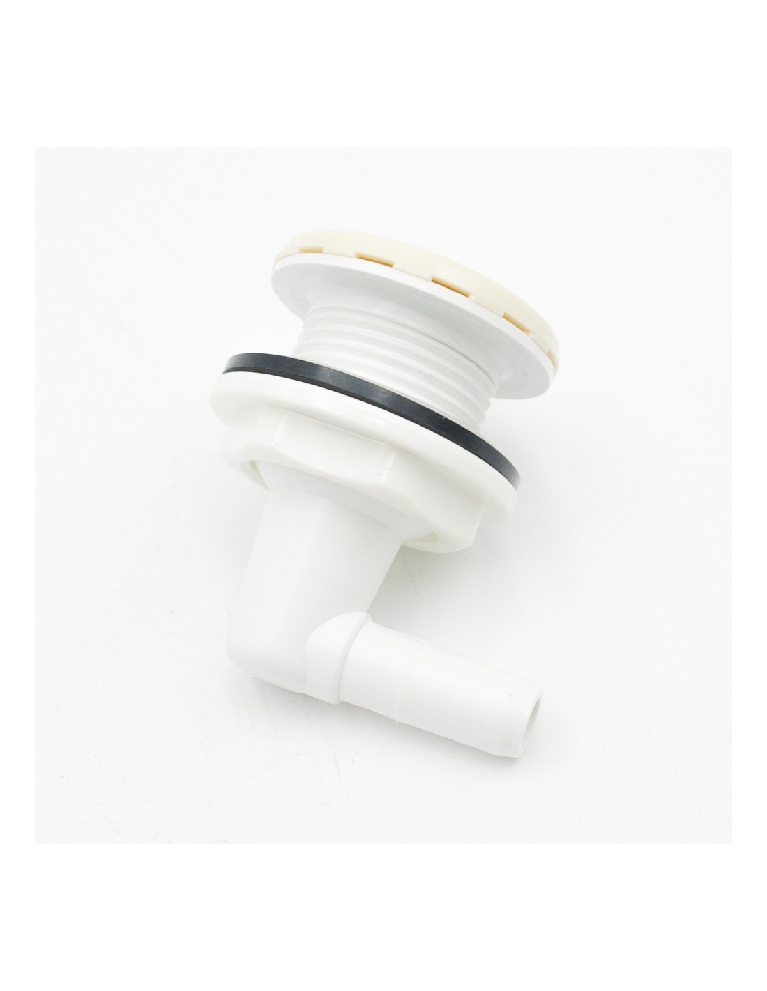 Boquilla difusora de aire fabricada en ABS roscada de medio-alto caudal para instalación de sistemas de hidromasaje en vaso de poliester, fibra de vidrio y otros prefafricados de hasta 10mm. de espesor.