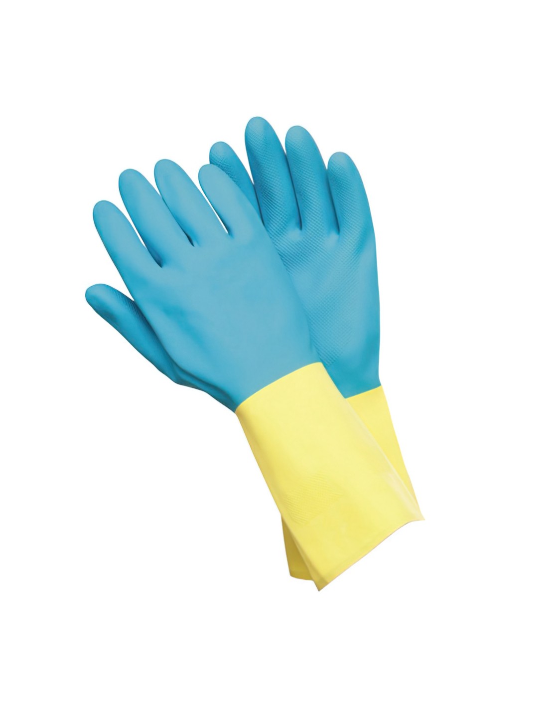 Guante neopreno-latex bicolor azul-amarillo.