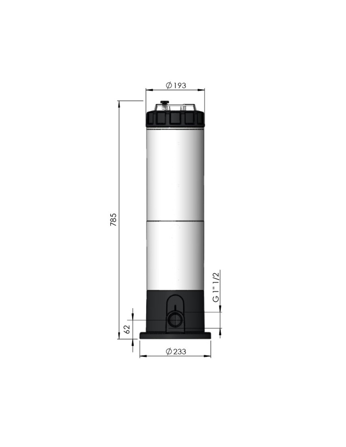Filtro de cartucho, fabricado con materiales plasticos de alta resistencia y durabilidad, tapa transparente, incluye cartucho filtrante, para filtracion de piscinas y spas.