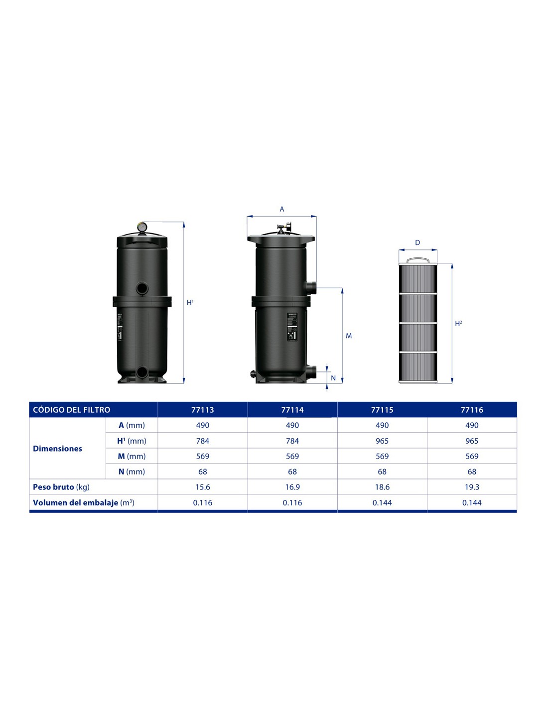 Filtro cartucho para piscinas y spas, fabricado con un diseño compacto para una facil instalacion.