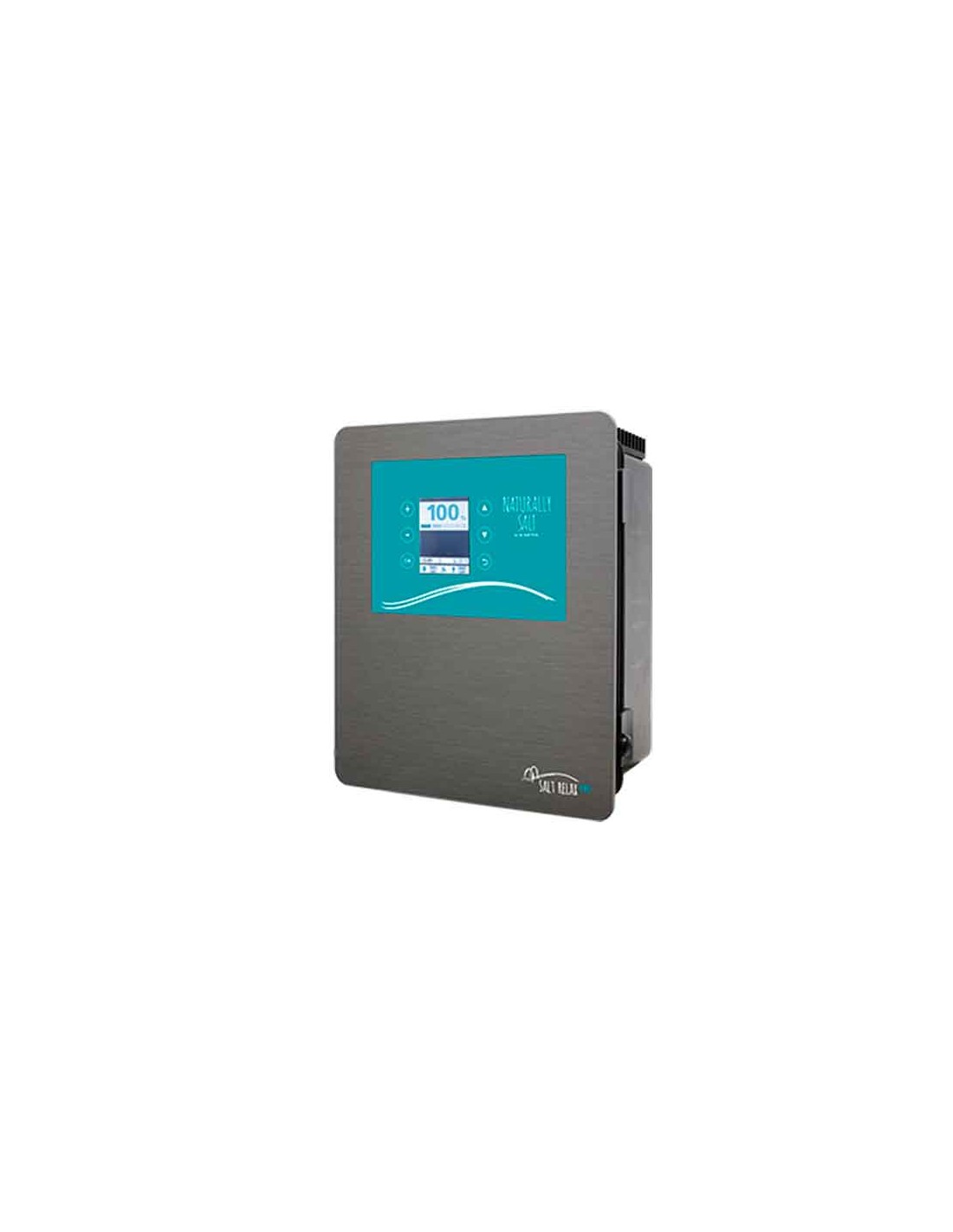 Electrolisis salina Salt Realax Pro de 18gr, tan solo necesita 1.5gr de sal por litro de agua para funcionar, dispone de multiples posibilidades de control e indica la temperatura del agua. Se puede equipar con modulos opcionales que permiten al dispositivo regular automaticamente el PH o controlar la cantidad de desinfectante mediante redox.
