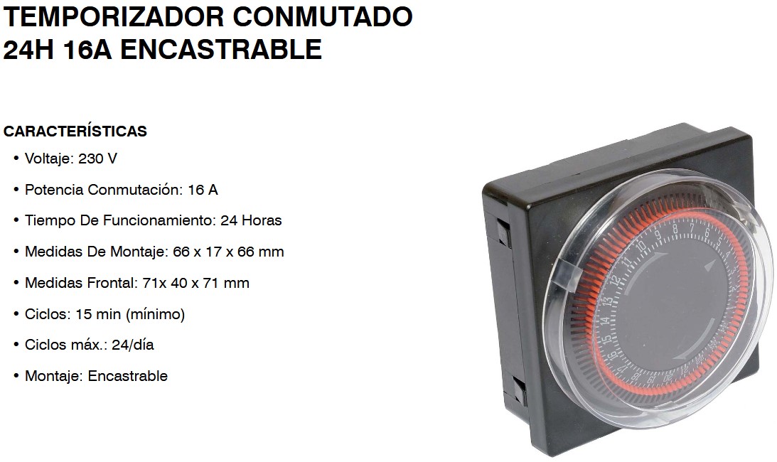 Temporizador conmutado encastrable.