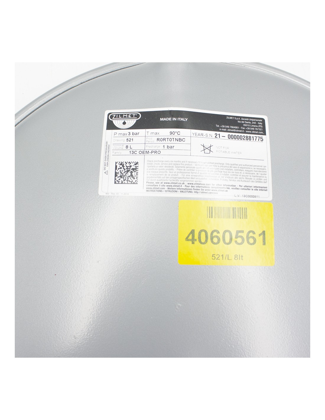 Vaso expansion caldera circular 8lt M1/2" ZILMET (521/L 8lt)