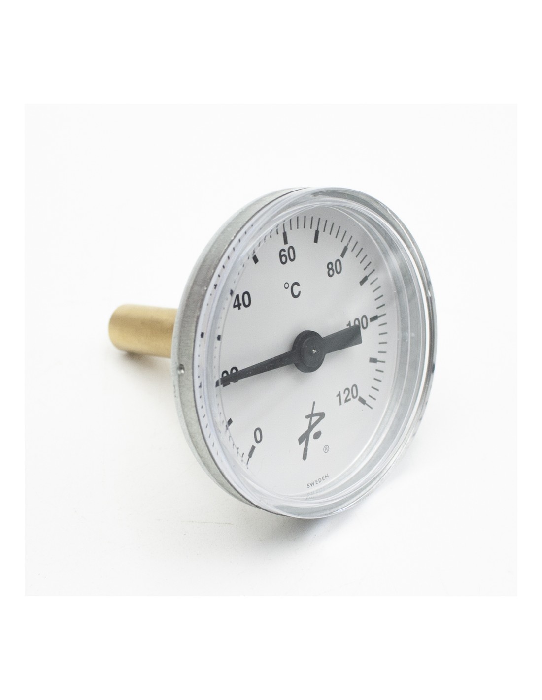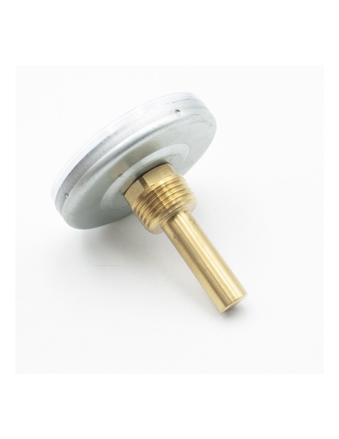 Termometro bimetalico calefaccion horizontal con visor en ABS, caja en acero. Fabricado con vaina de laton rosca M1/2".