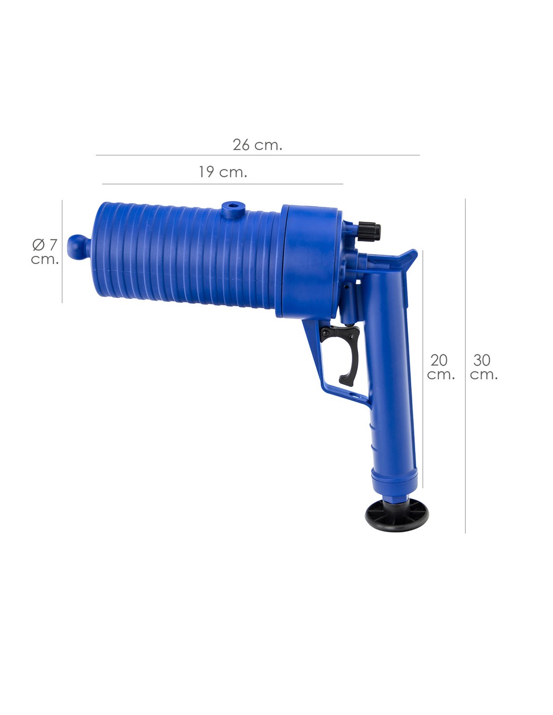 - El desatascador funciona mediante aire comprimido previamente cargado con el embolo incorporado en el mango.