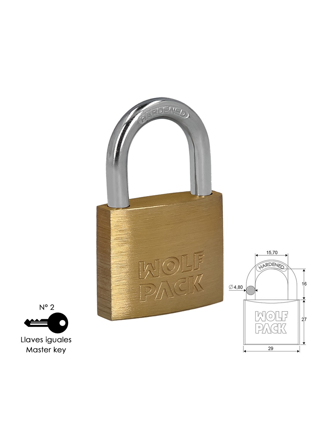 Candado Laton Arco Normal Llaves Iguales 30 mm. Nº2