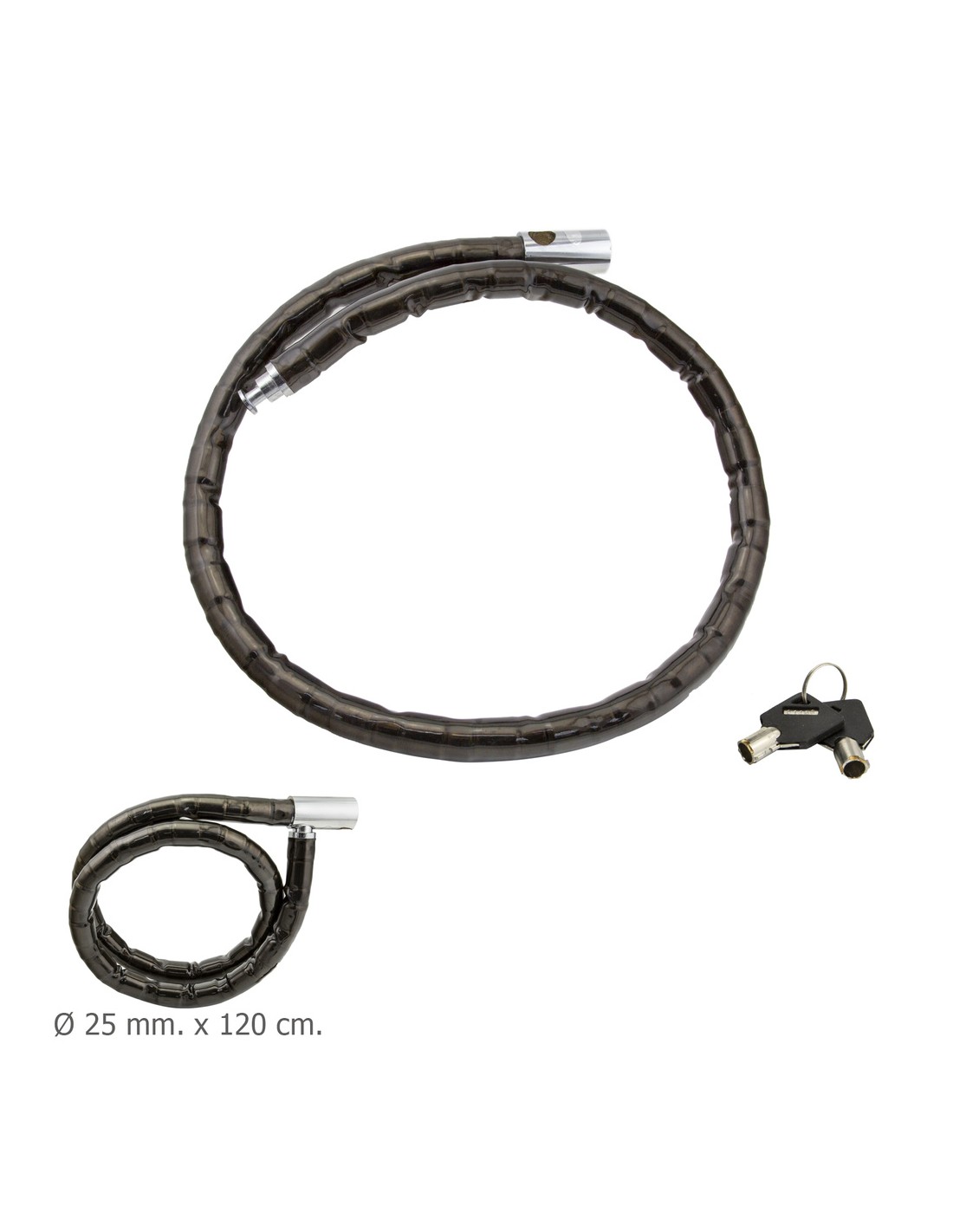 - Diámetro x longitud: 25 mm. x 120 cm.