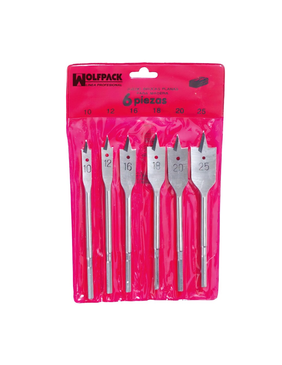 Juego Brocas Planas Madera 3 Puntas Wolfpack 6 Piezas