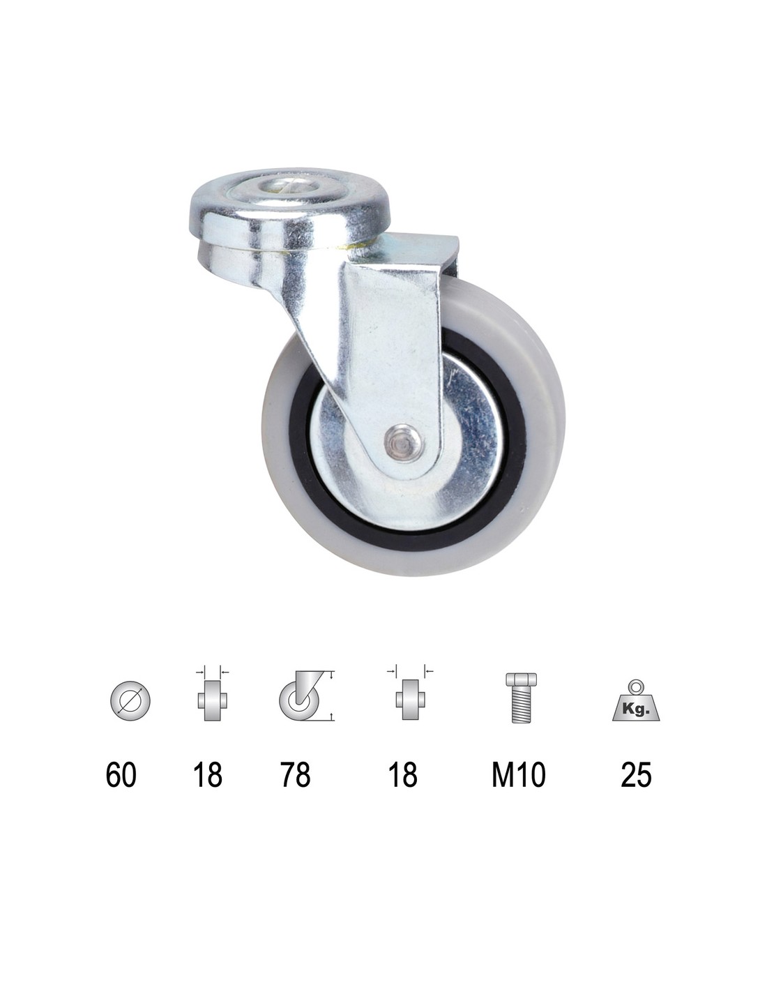 Rueda Goma Gris Pasante   60 mm.