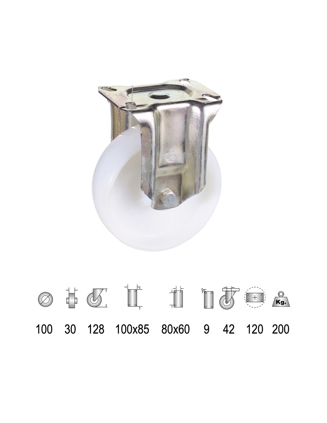 Rueda Industrial Nylon Placa Fija 100 mm.