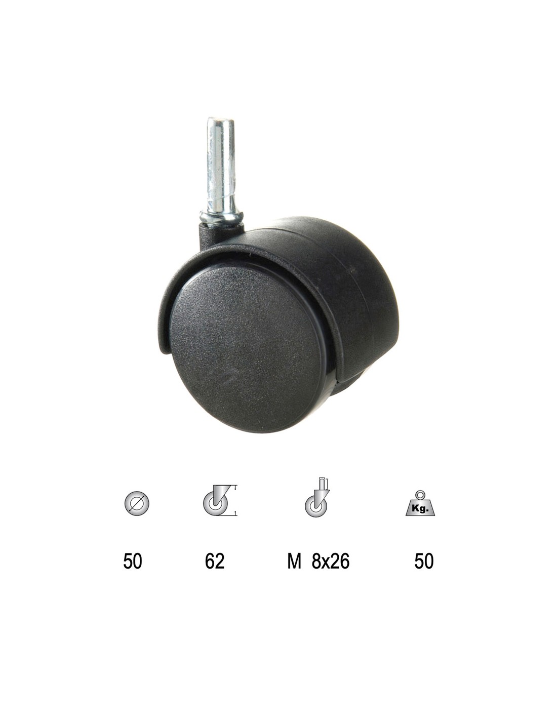 Rueda Domestica Nylon Negro Espiga 50 mm.