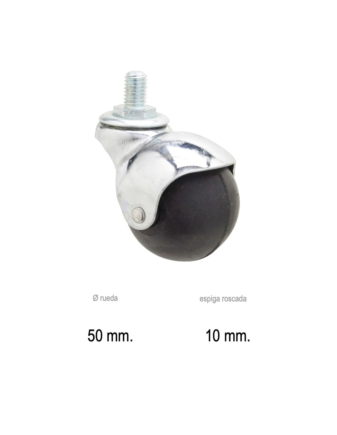 Rueda Domestica Goma Negra Esfera Espiga M10x50 mm.