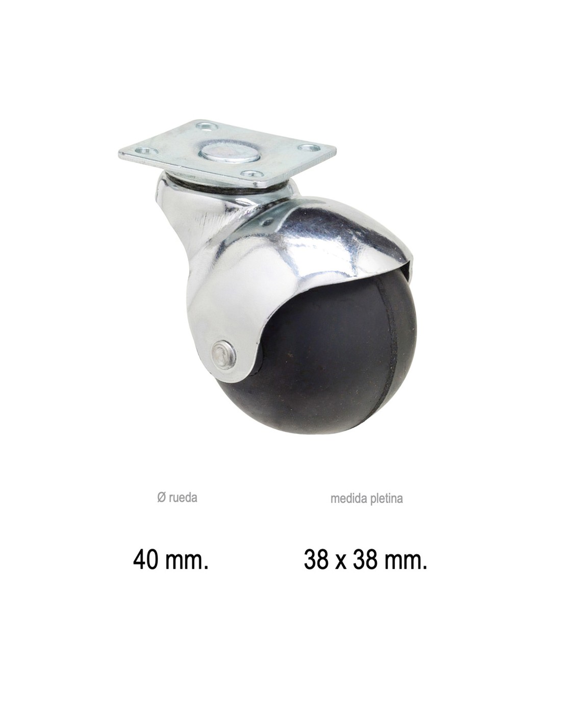 Rueda Domestica Goma Negra Esfera Placa 40 mm.