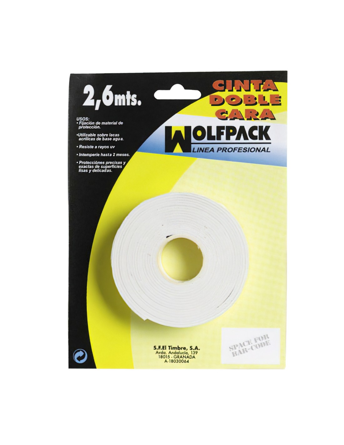 Cinta doble cara 2,6 m. x 18 mm.