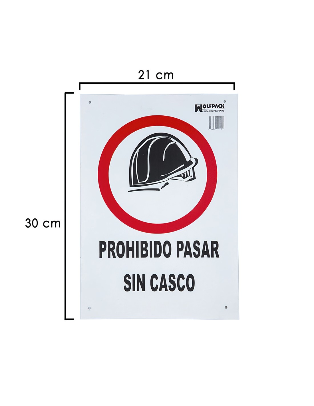 Cartel Prohibido Pasar Sin Casco 30x21 cm.