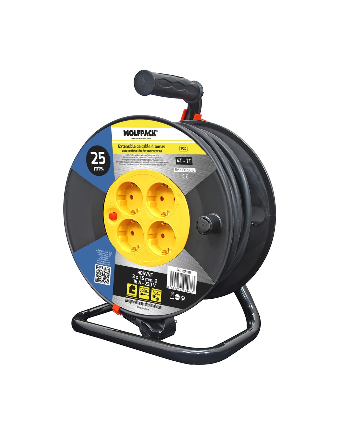 Extensible Industrial 4 Tomas 25 Metros 3 x 1,5 mm. con Protección Sobrecarga