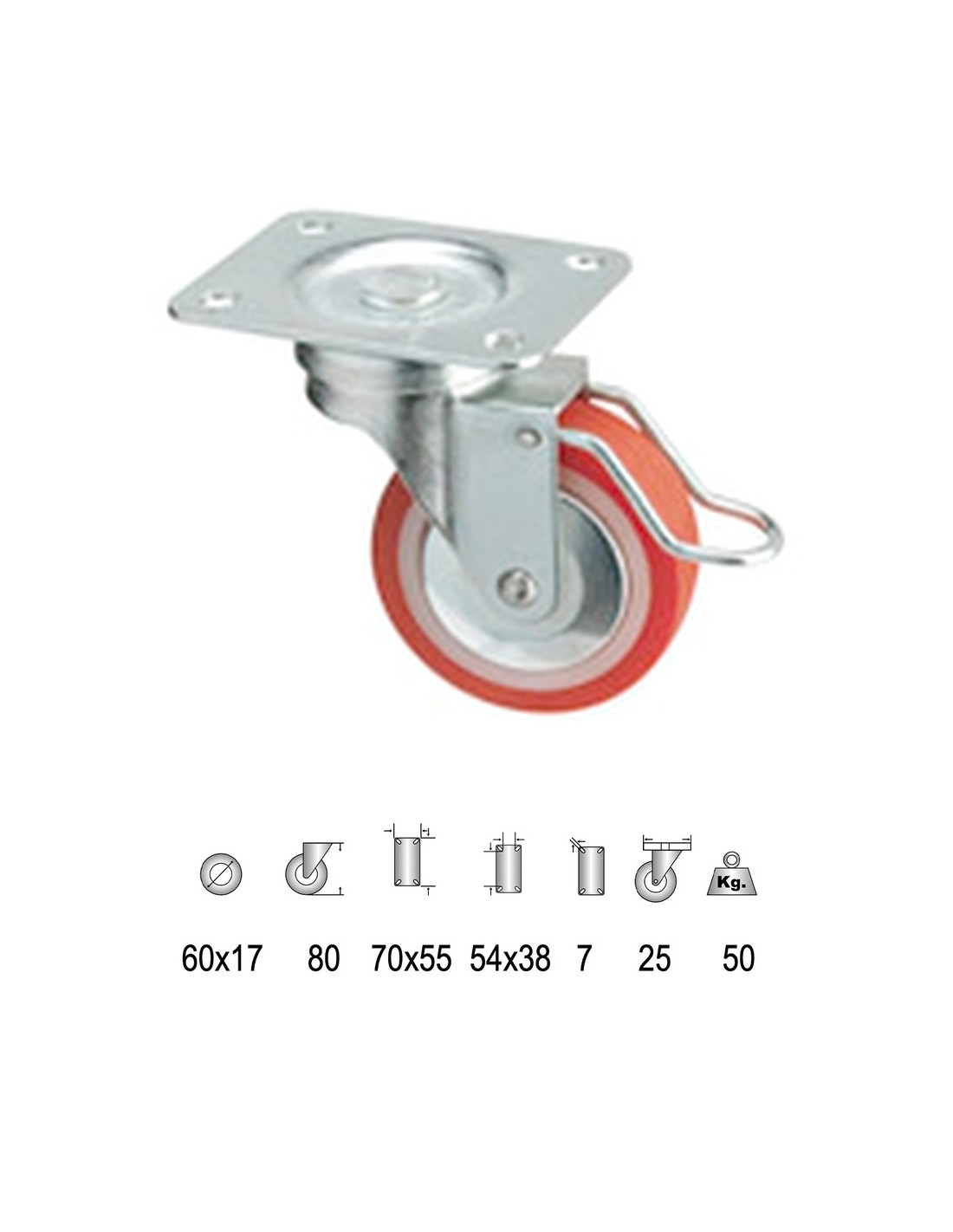 Rueda Poliuretano Placa Con Freno 60 mm.