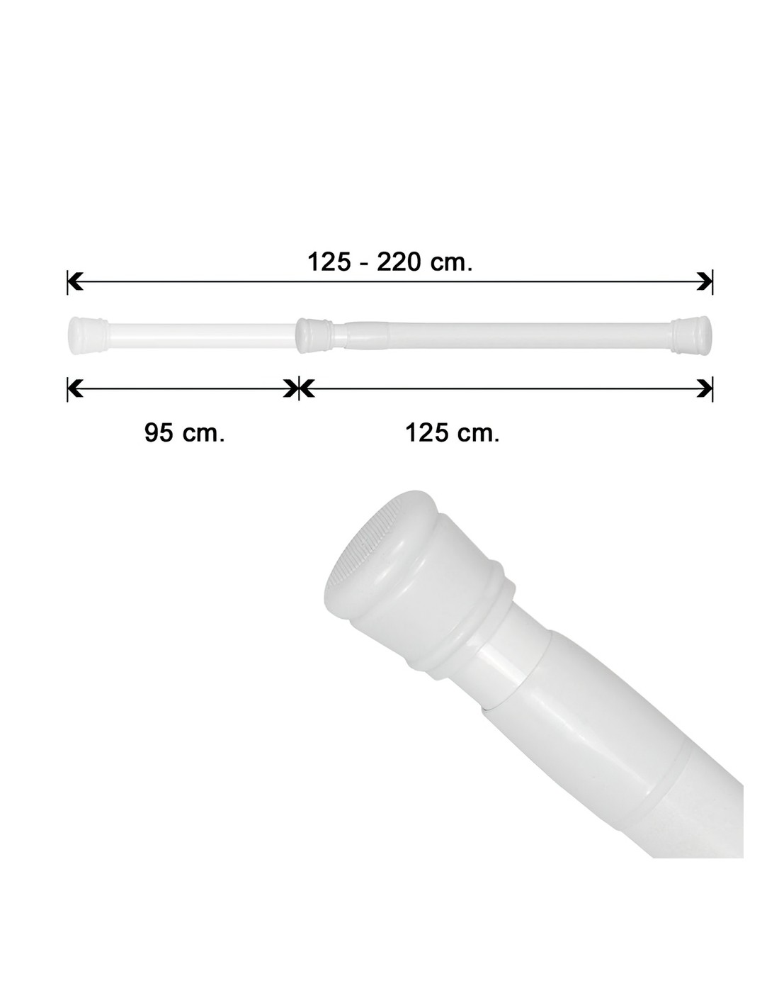Barra Para Cortina Ducha Extensible Aluminio Blanco125 a 220 cm.