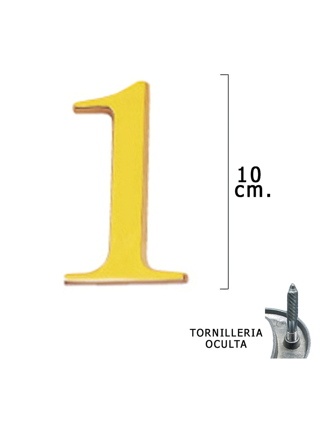 Numero Latón "1" 10 cm. con Tornilleria Oculta (Blister 1 Pieza)
