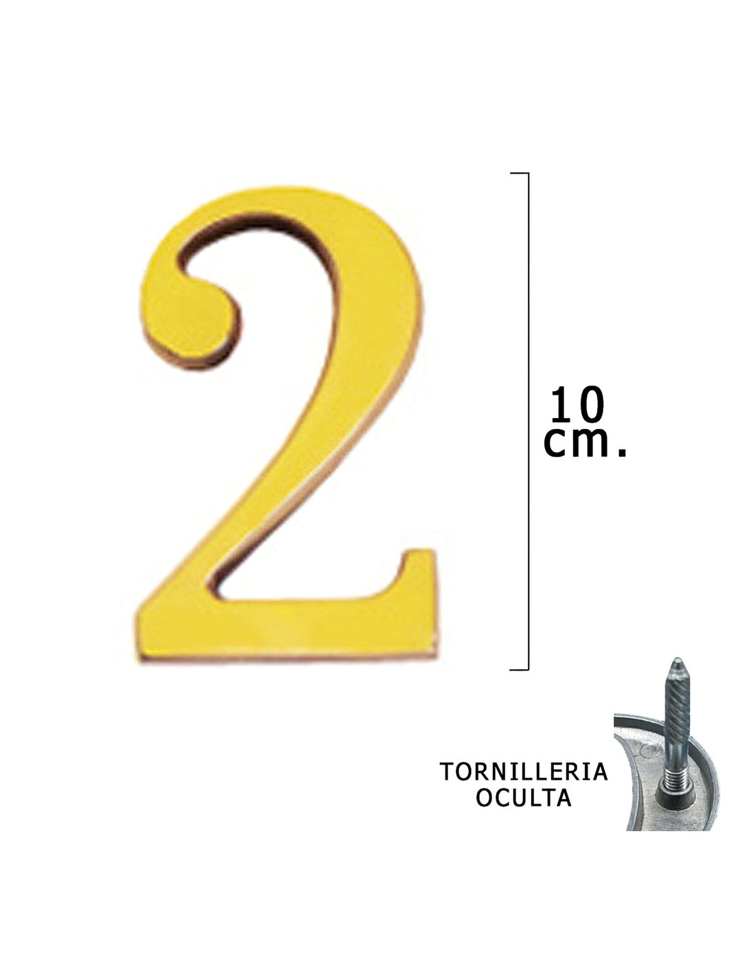 Numero Latón "2" 10 cm. con Tornilleria Oculta (Blister 1 Pieza)