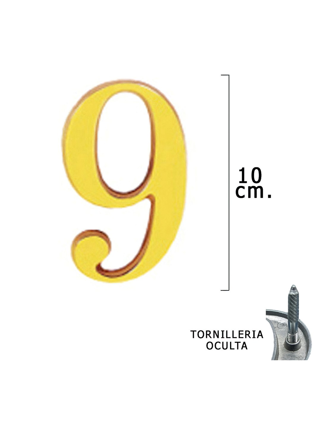 Numero Latón "9" 10 cm. con Tornilleria Oculta (Blister 1 Pieza)