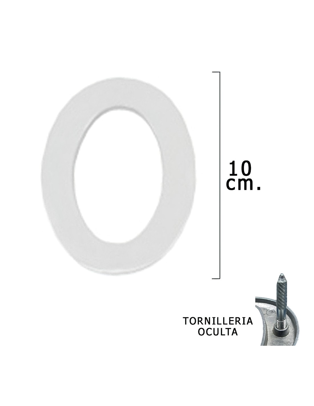 Numero Metal "0" Plateado Mate 10 cm. con Tornilleria Oculta (Blister 1 Pieza)