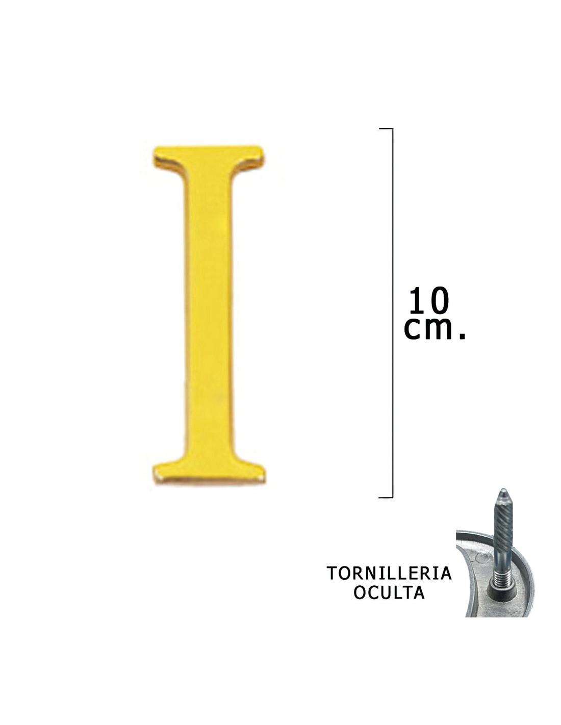 Letra Latón "I" 10 cm. con Tornilleria Oculta (Blister 1 Pieza)