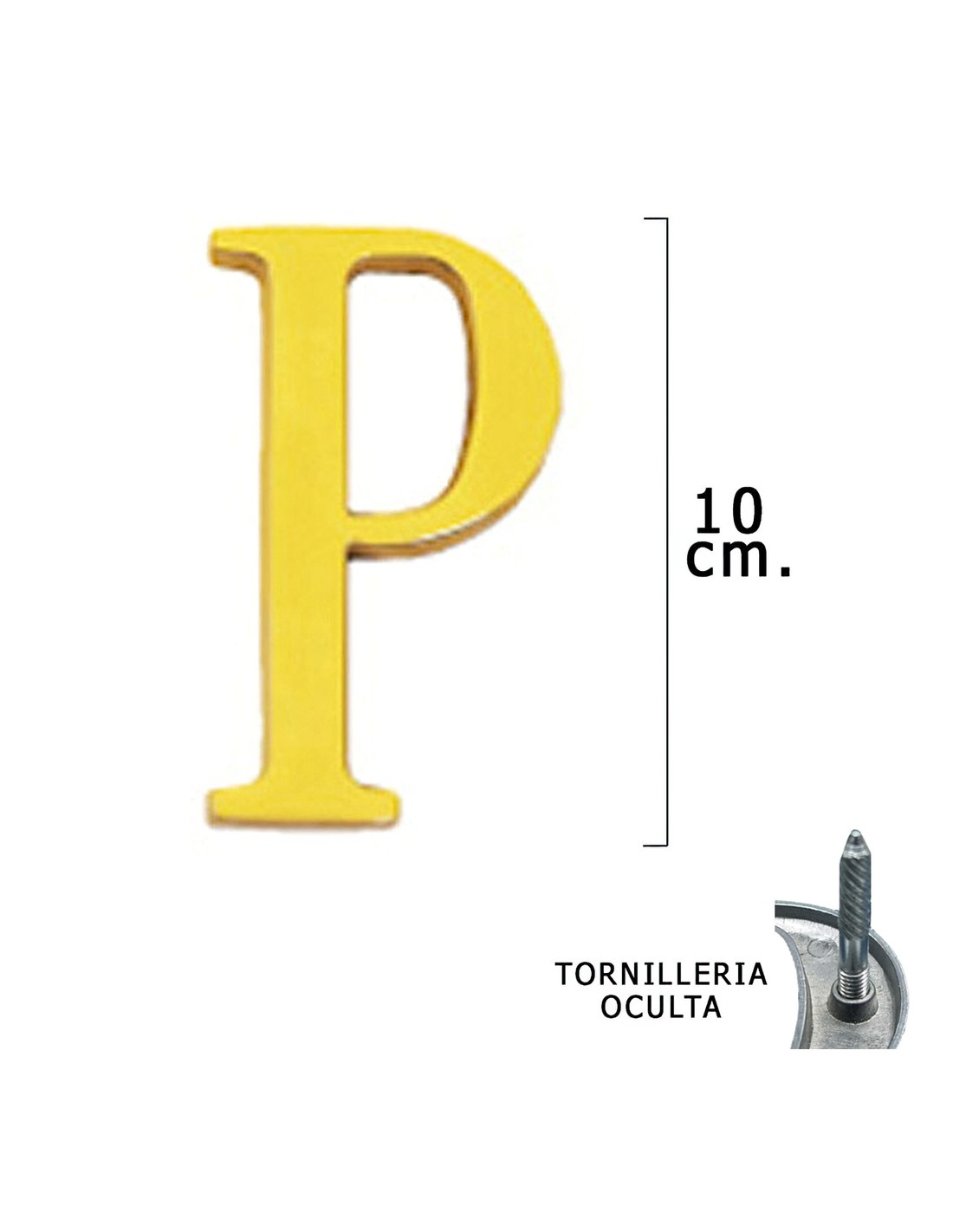 Letra Latón "P" 10 cm. con Tornilleria Oculta (Blister 1 Pieza)