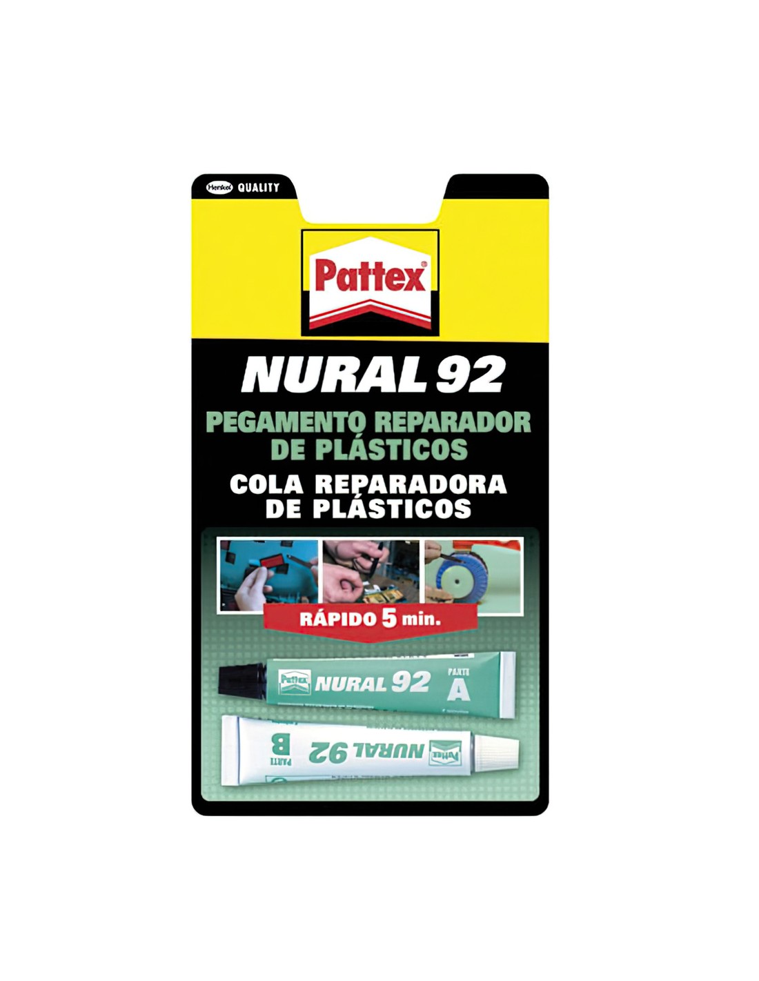 - Color del producto: translúcido. Se adhiere a PVC, ABS, metacrilato, formica, baquelita, poliuretano expandido, poliestireno, skay, nylon, hule y telas plastificadas. También se adhiere a otros materiales metálicos, madera, cerámica y vidrio. No es apto para polietileno, polipropileno, ni ptfe. Pattex Nural 92 pega, repara y rellena de forma permanente. Una vez endurecido lijado, pulido, tratado, y mecanizado.