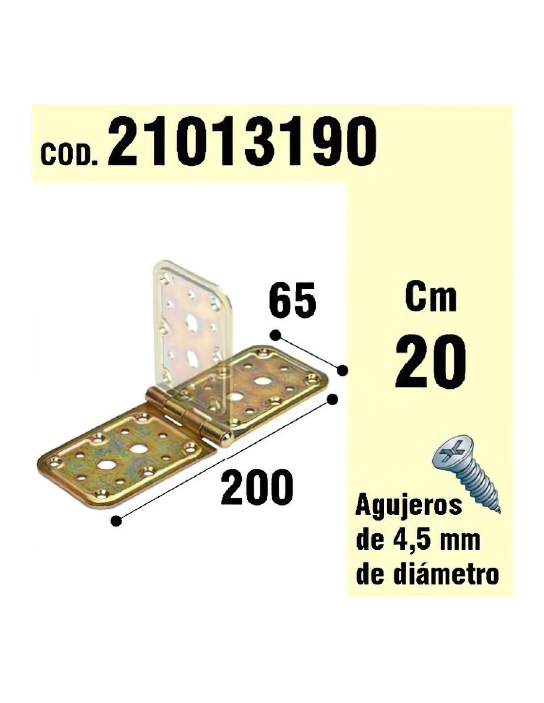 Soporte Para Madera Bisagra Bicromatado 65 x 200 mm.