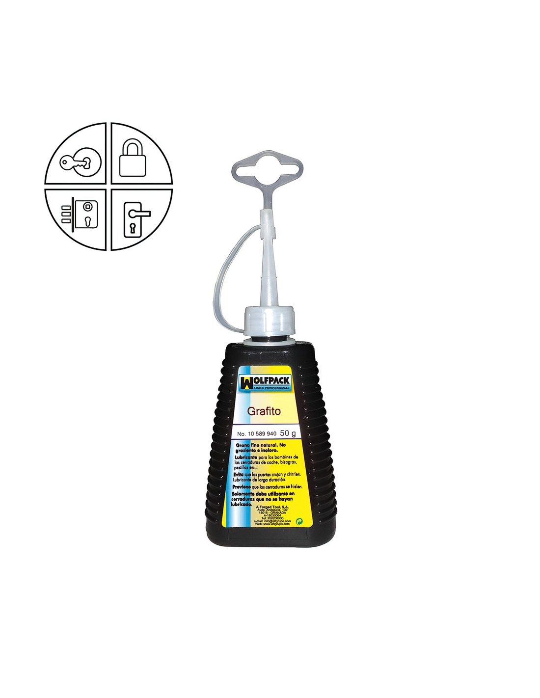 - Engrase / lubricante / desatascador de llaves de vehículos, cerraduras cilíndricas, bisagras y cerrojos.