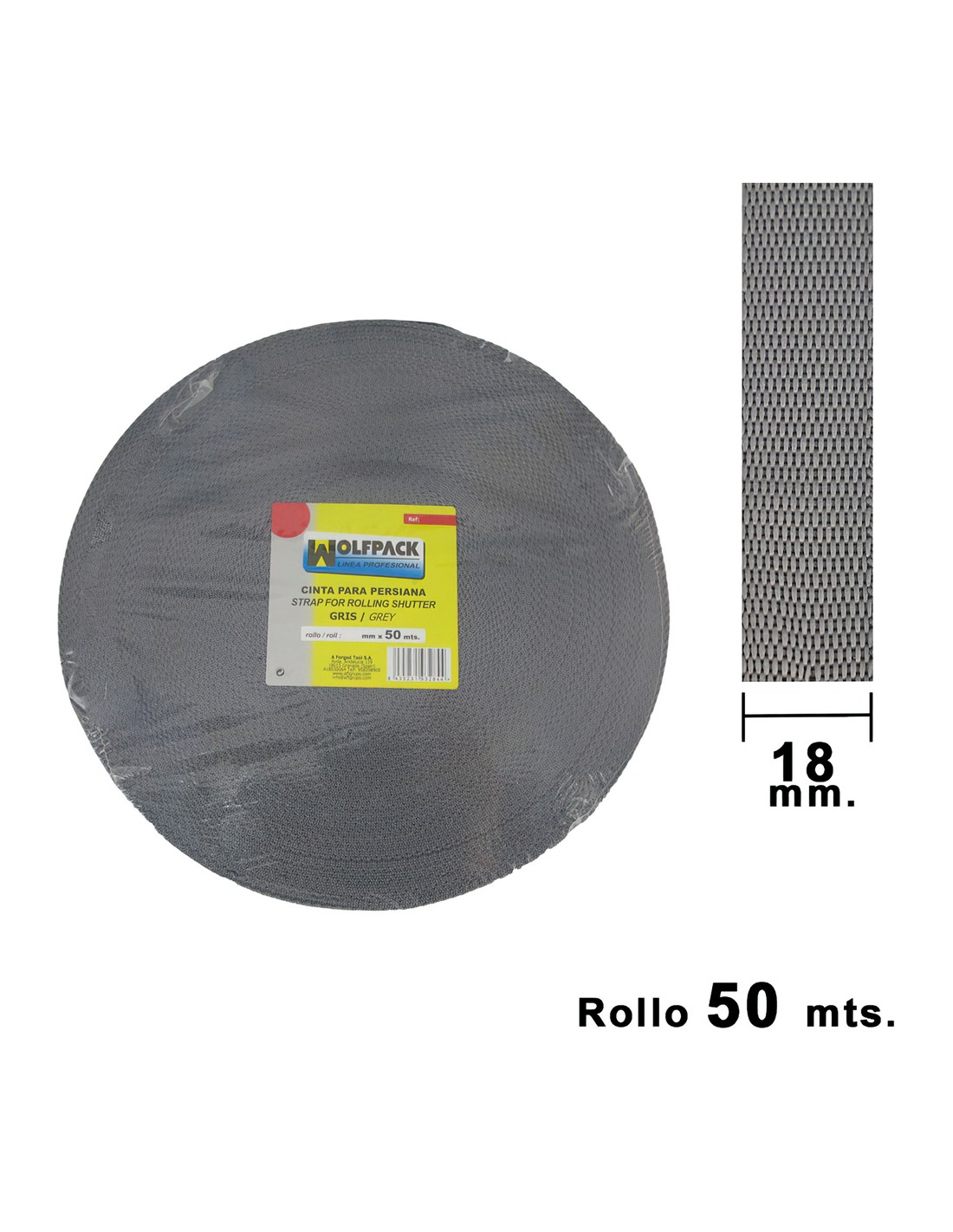 Cinta Persiana Wolfpack Gris 18 mm. Rollo 50 Metros
