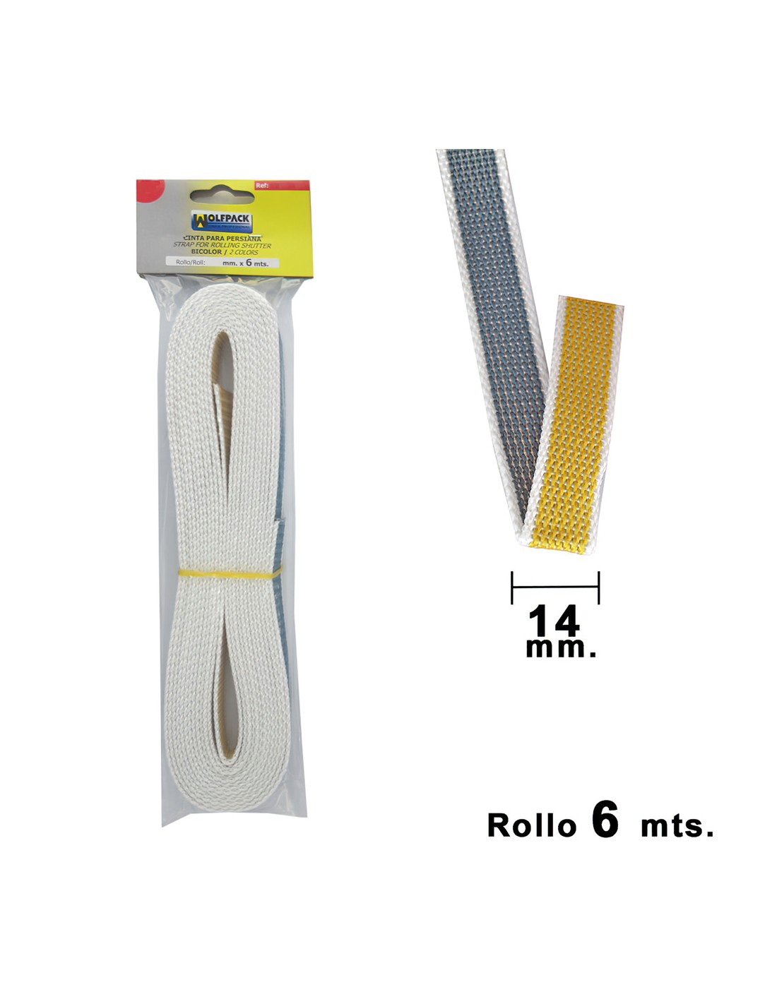 Cinta Persiana Wolfpack Bicolor 14 mm. Rollo 6...