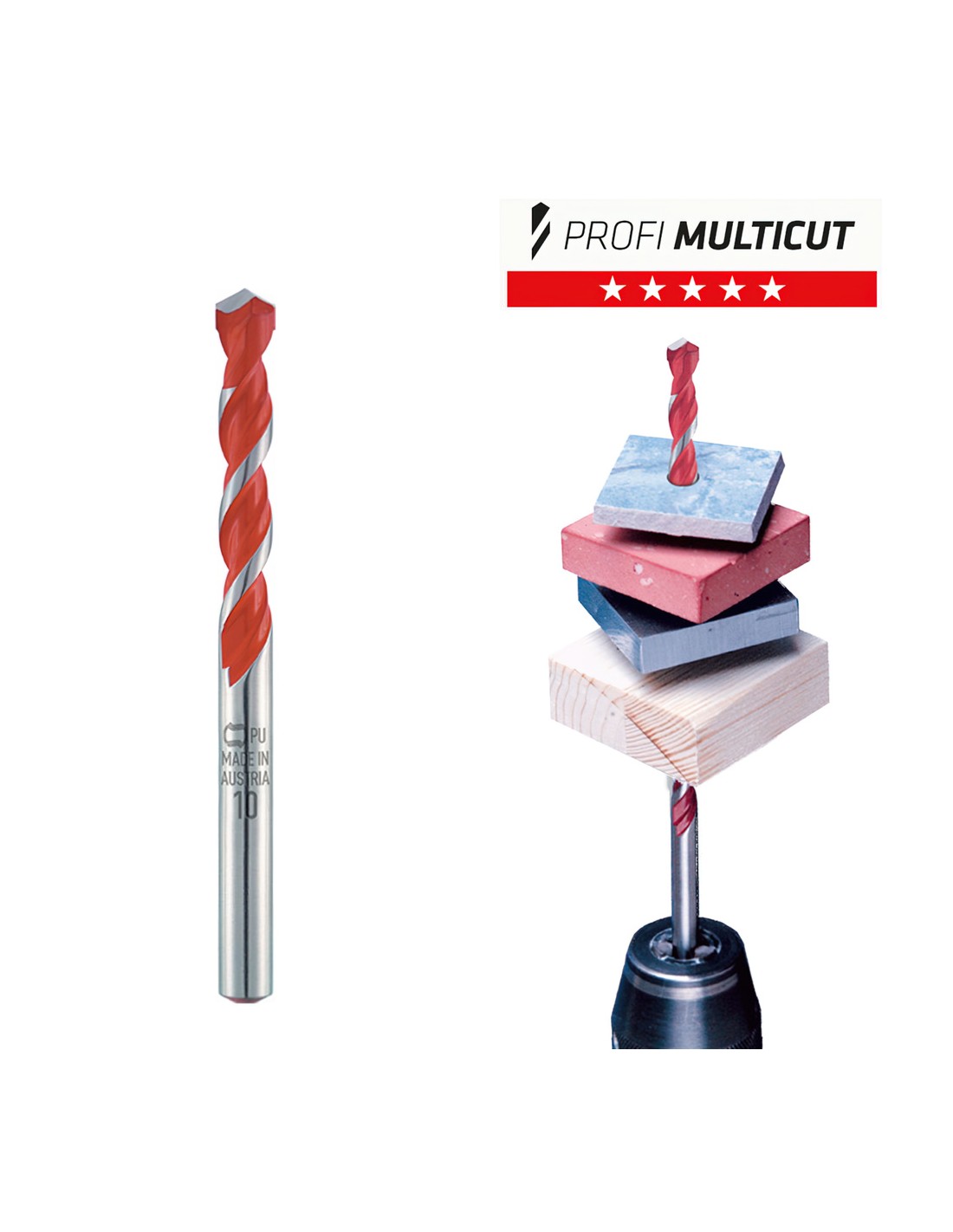 - Perfi l cuádruple escalonado patentado, Rápida eliminación de los detritos durante el taladrado en mampostería y hormigón.