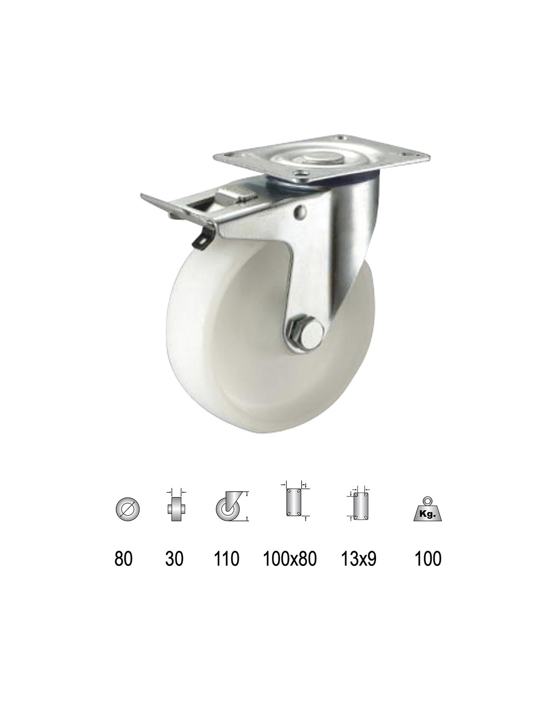 Rueda Industrial Nylon Placa con freno   80mm