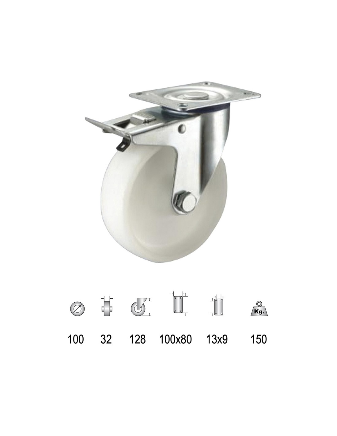 Rueda Industrial Nylon Placa con freno 100mm