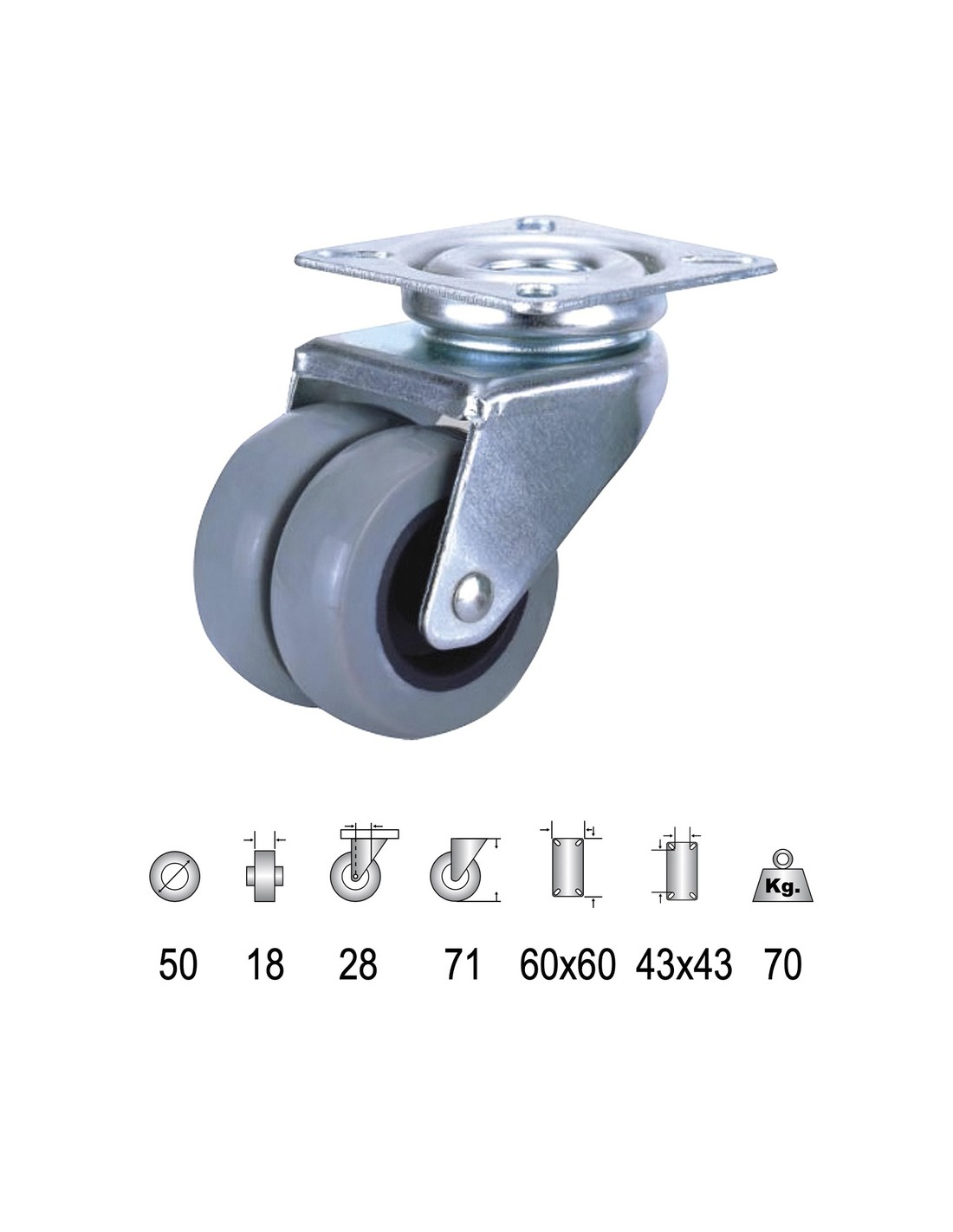 Rueda Doméstica Doble Poliamida Gris Placa 50mm