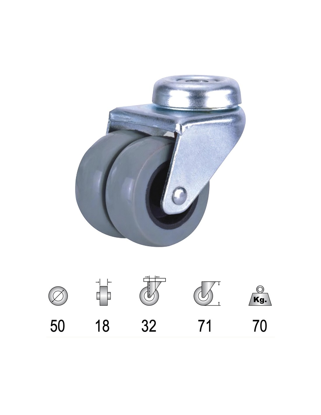 Rueda Doméstica Doble Poliamida Gris Pasante 50mm